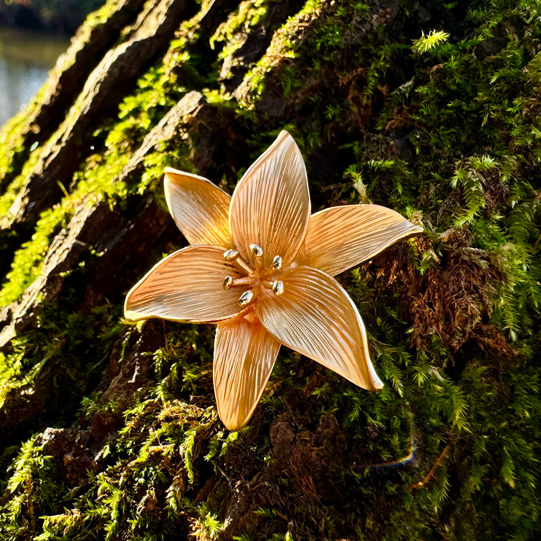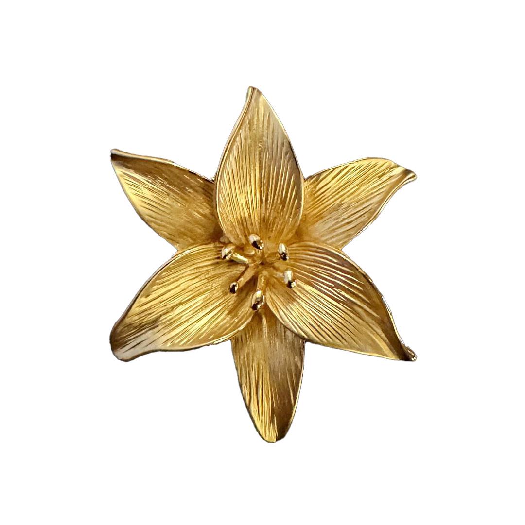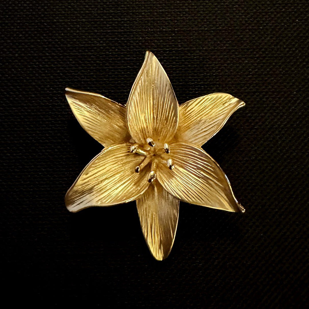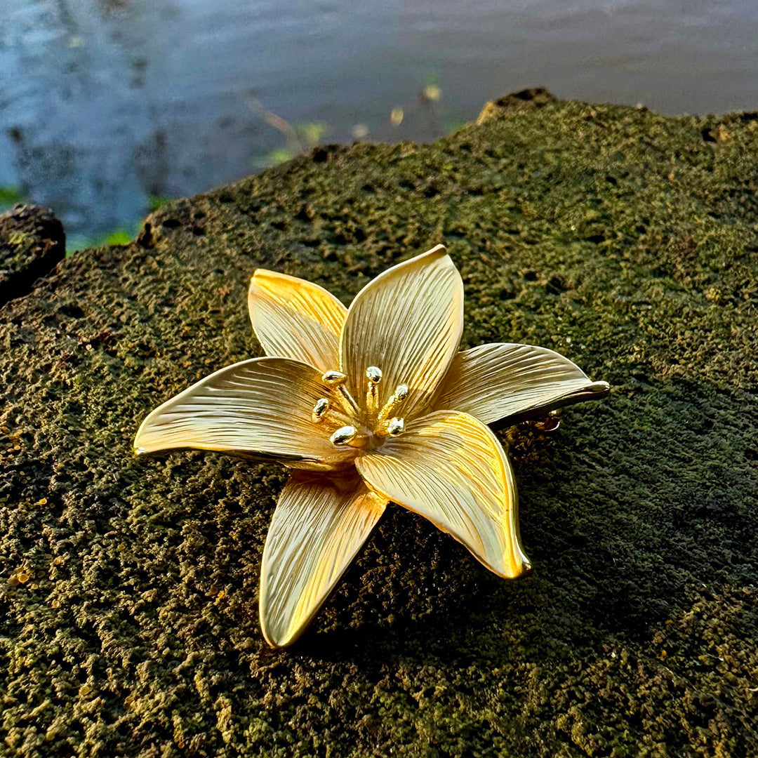 Lily Gold Flower Brooch, 14k Gold Plated. This beautiful Gold Lily flower brooch adds a touch of elegance to any outfit or makes a fabulous gift.