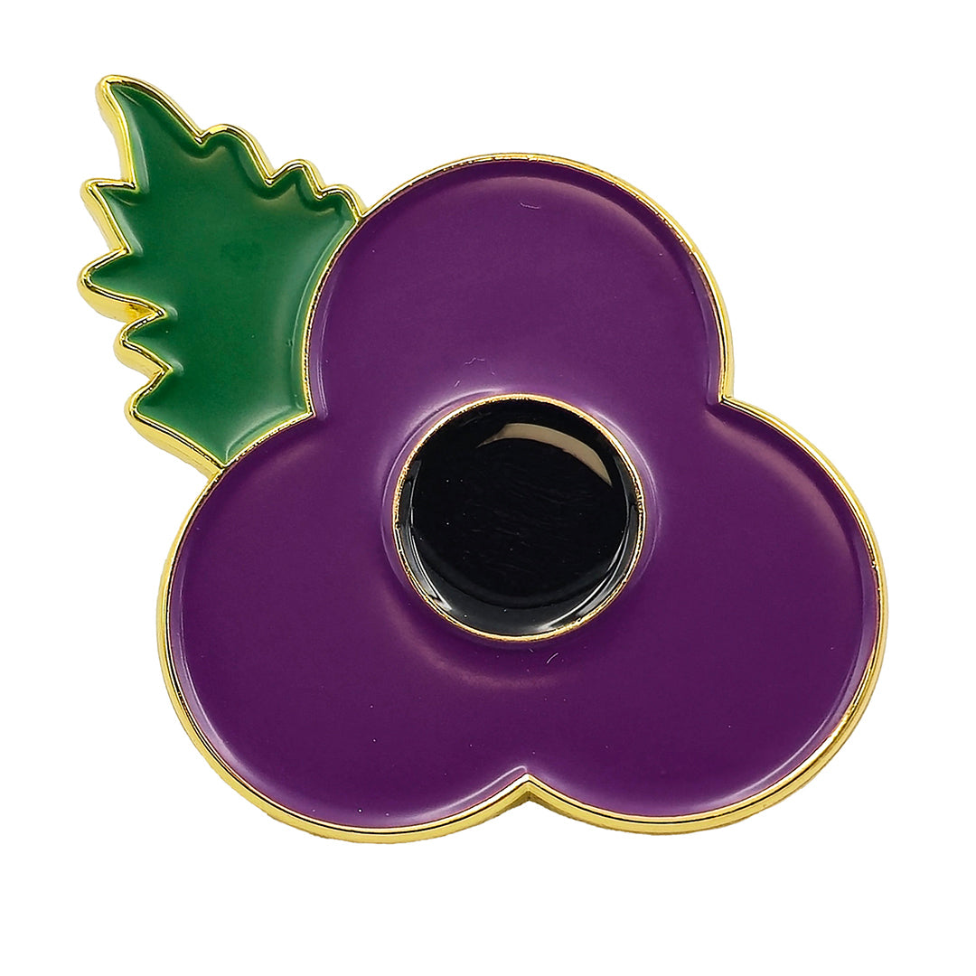 Brand NEW Purple Poppy Pin. The Purple Poppy Pin Leaf 3cm is designed in-house and available exclusively from the RAF Association. The purple poppy is dedicated to all the animals that served and died alongside British and allied forces.