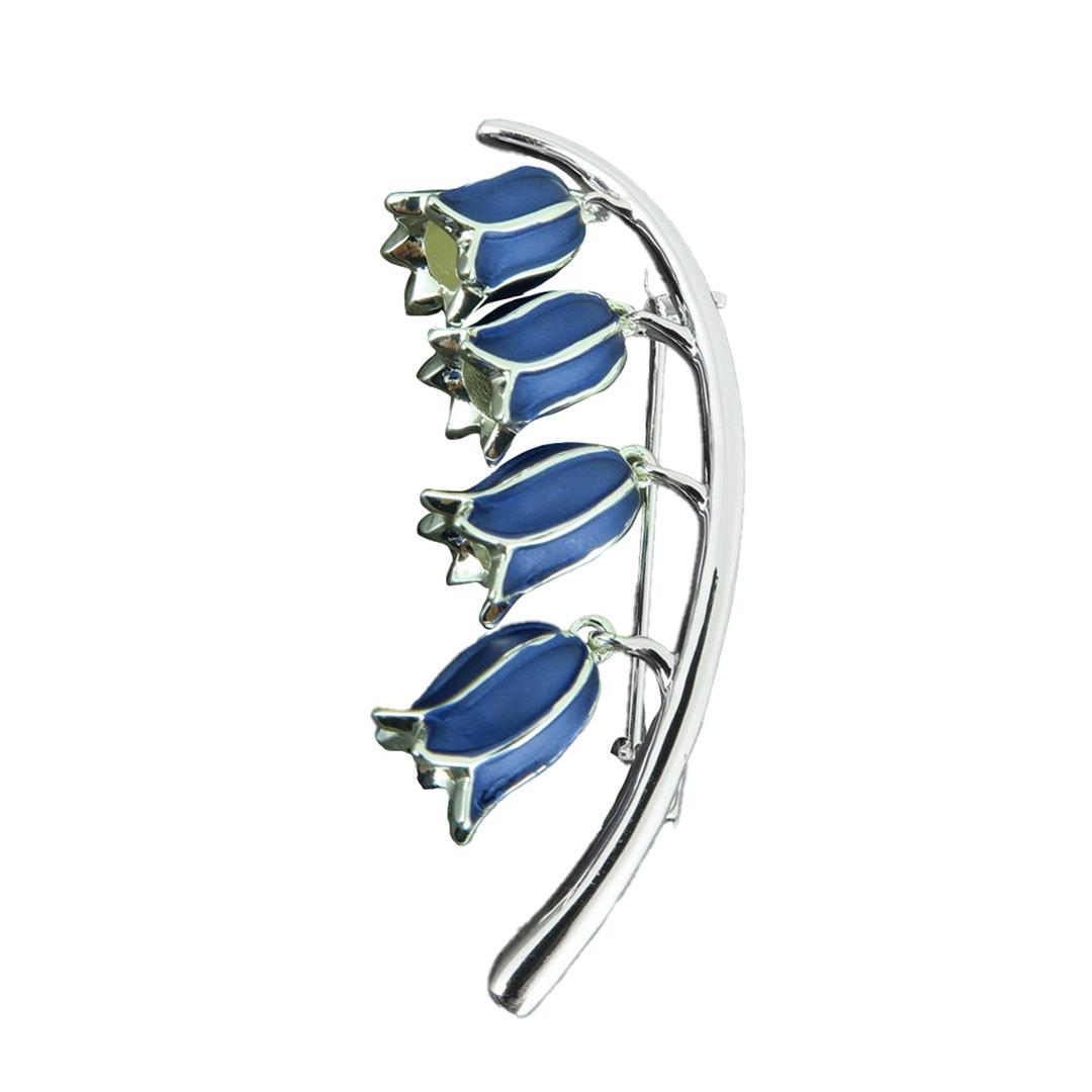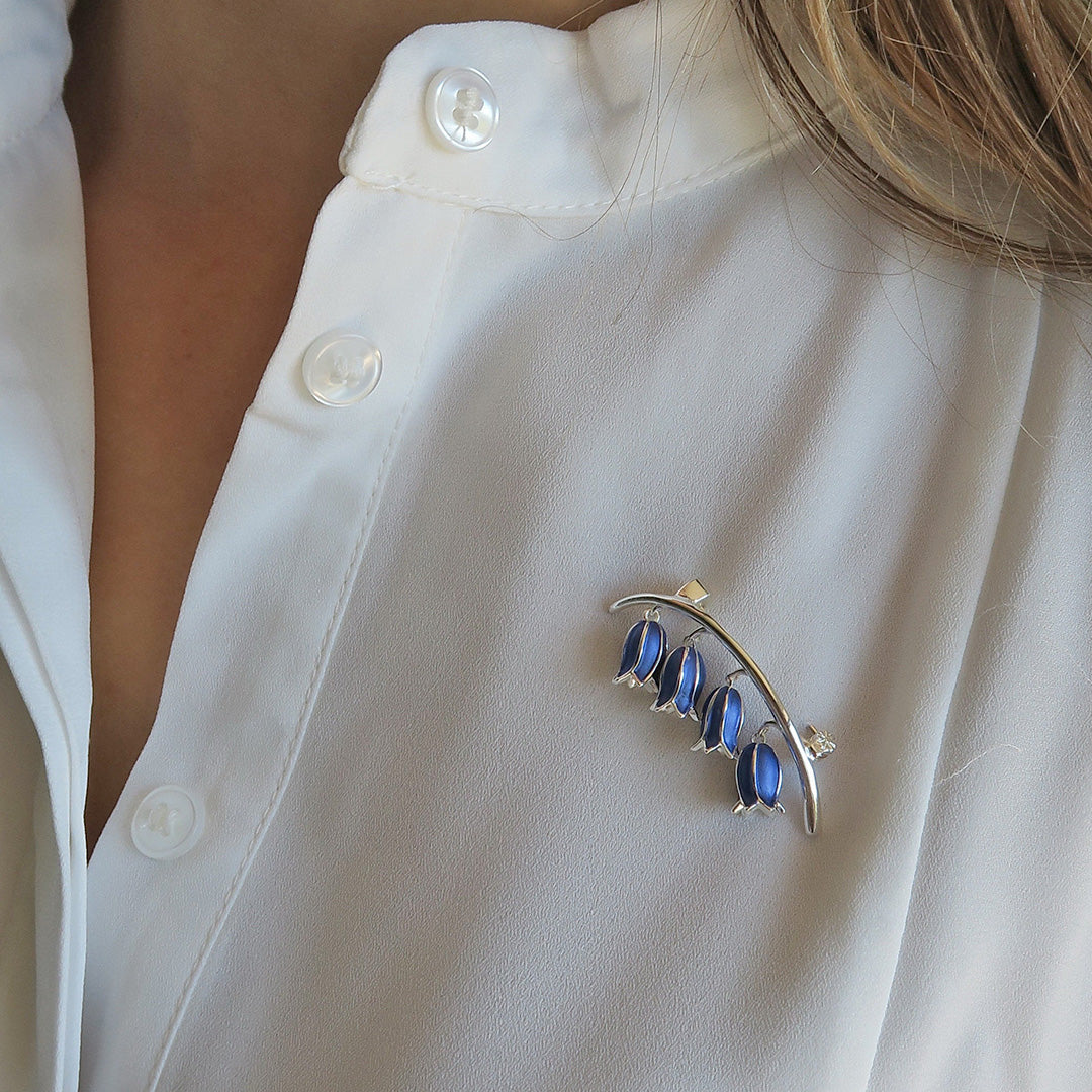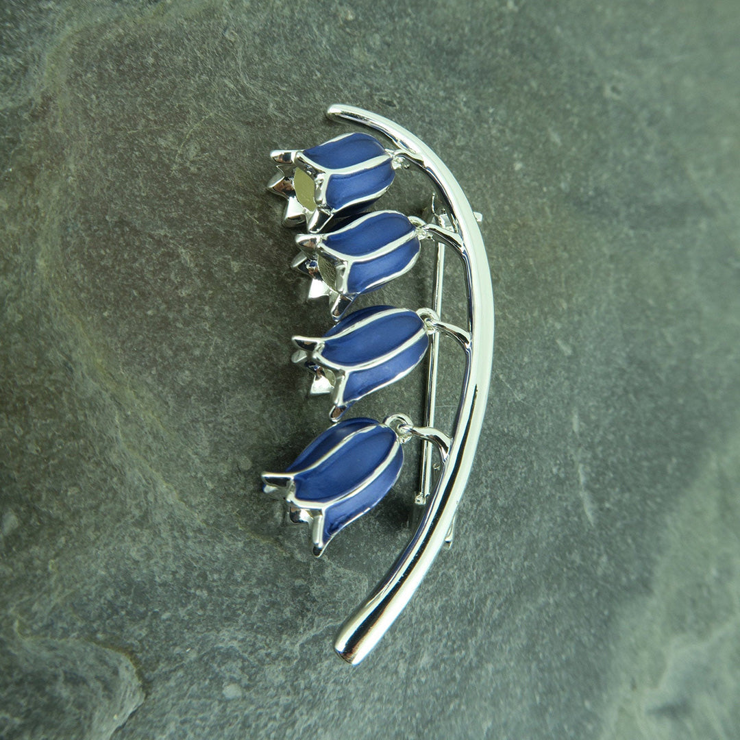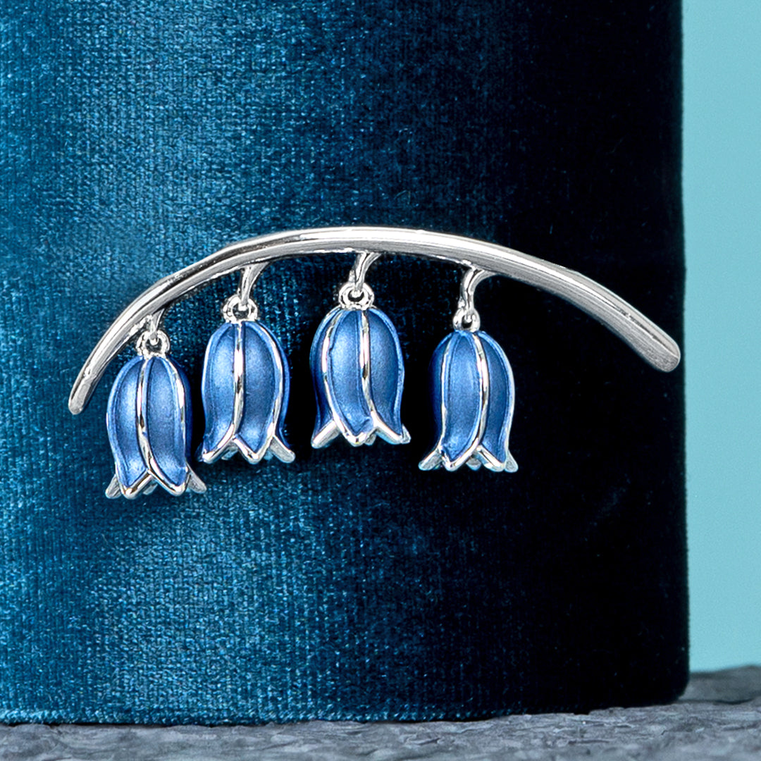 Bluebell Flower Brooch, Silver Plated - This Bluebell flower silver plated pin brooch has hand finished moving blue enamel bells.