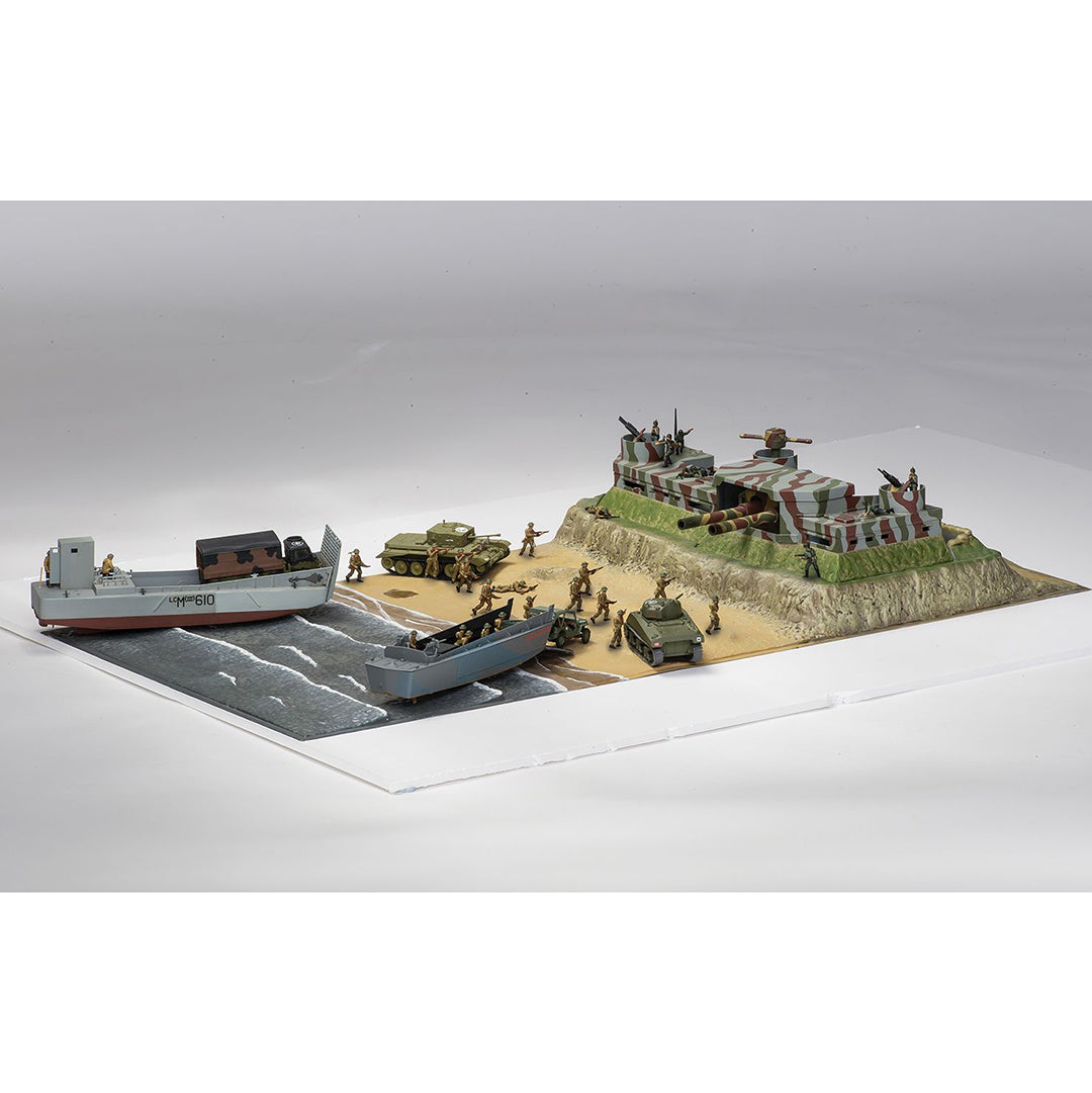 Bring a snapshot of history into your home with this amazingly detailed D-Day Operation Overlord Model Set Airfix Gift Sets are ideal for more advanced modellers and include glue, acrylic paints and brushes. Early on the morning of June 6th 1944 the combined forces of the Allied armies landed on the Normandy beaches in Northern France in the most ambitious and important operation of the Second World War. With airborne troops already on the ground and fighting, the sea-borne element of the force began landing. This phase of the operation was codenamed Neptune and consisted of five invasion beaches, three British and Canadian (Sword, Gold and Juno) and two American beaches (Omaha and Utah).