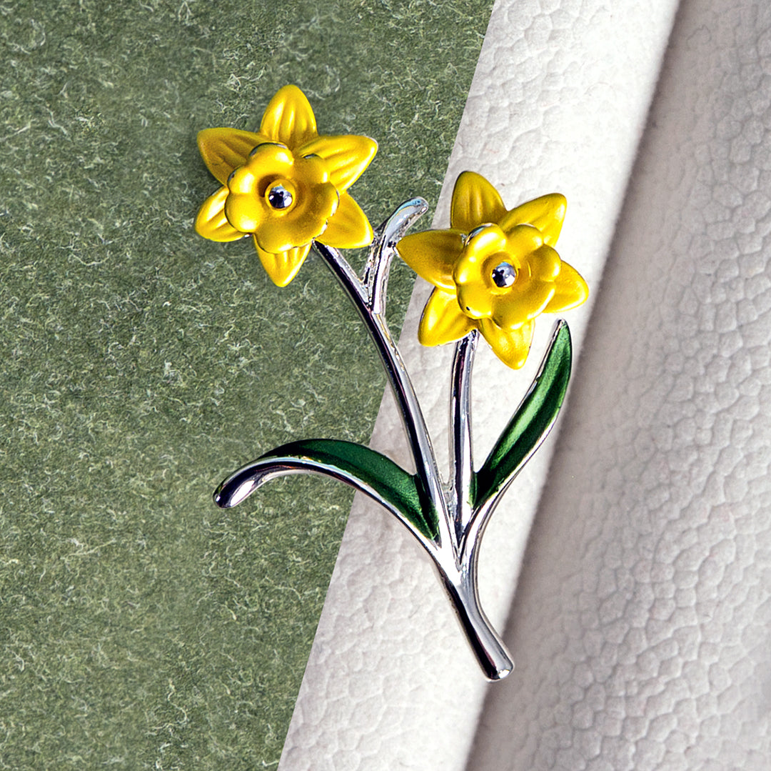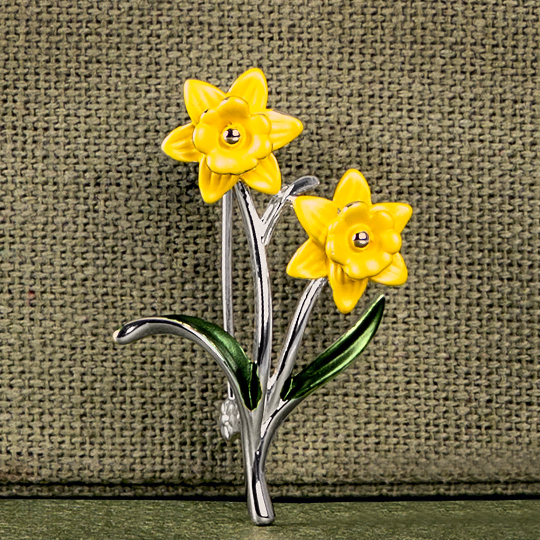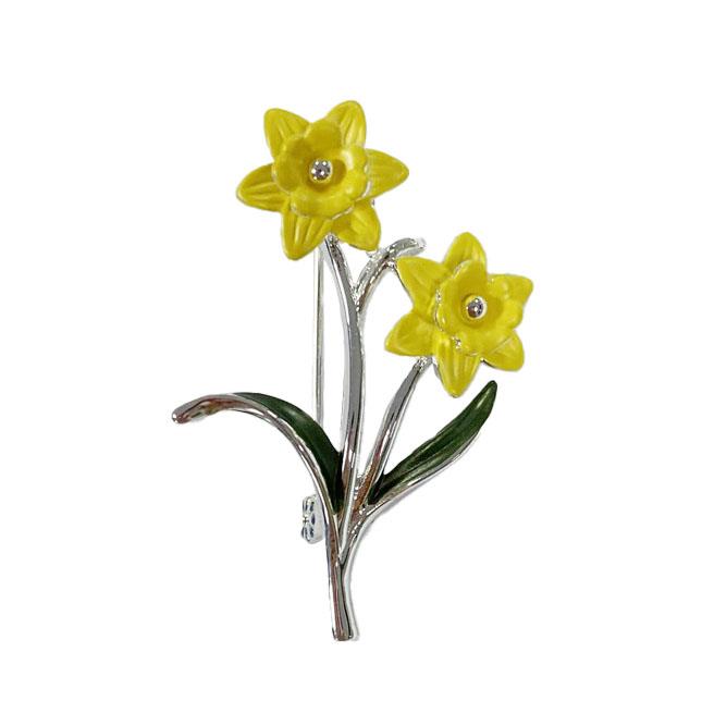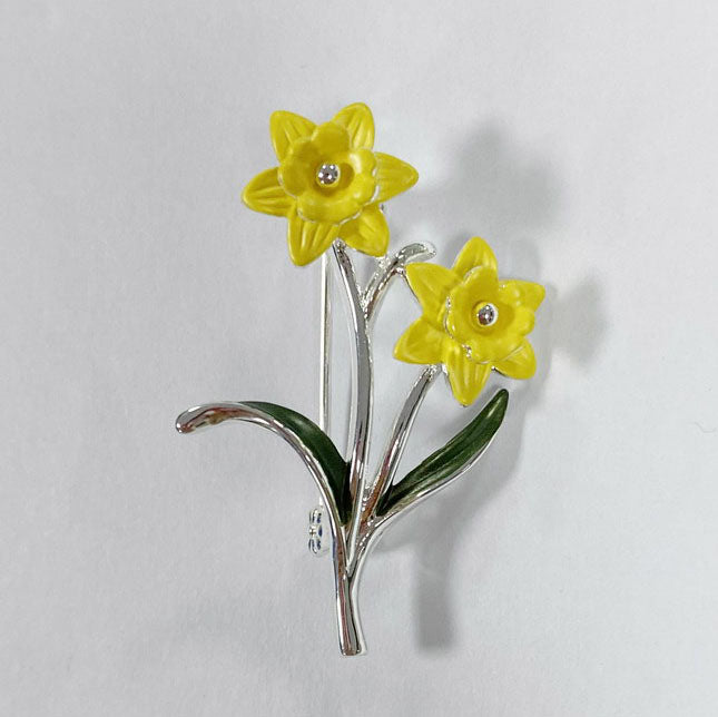 Daffodil Spray Brooch Silver Tone - This beautiful Daffodil flower brooch is the ideal way to bring the brightness and cheer of Spring to any outfit.