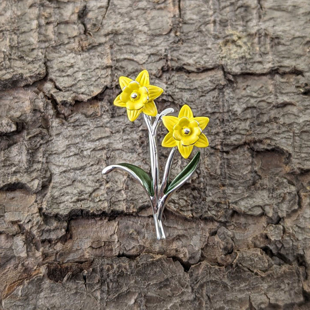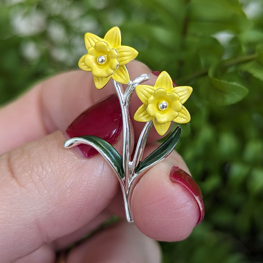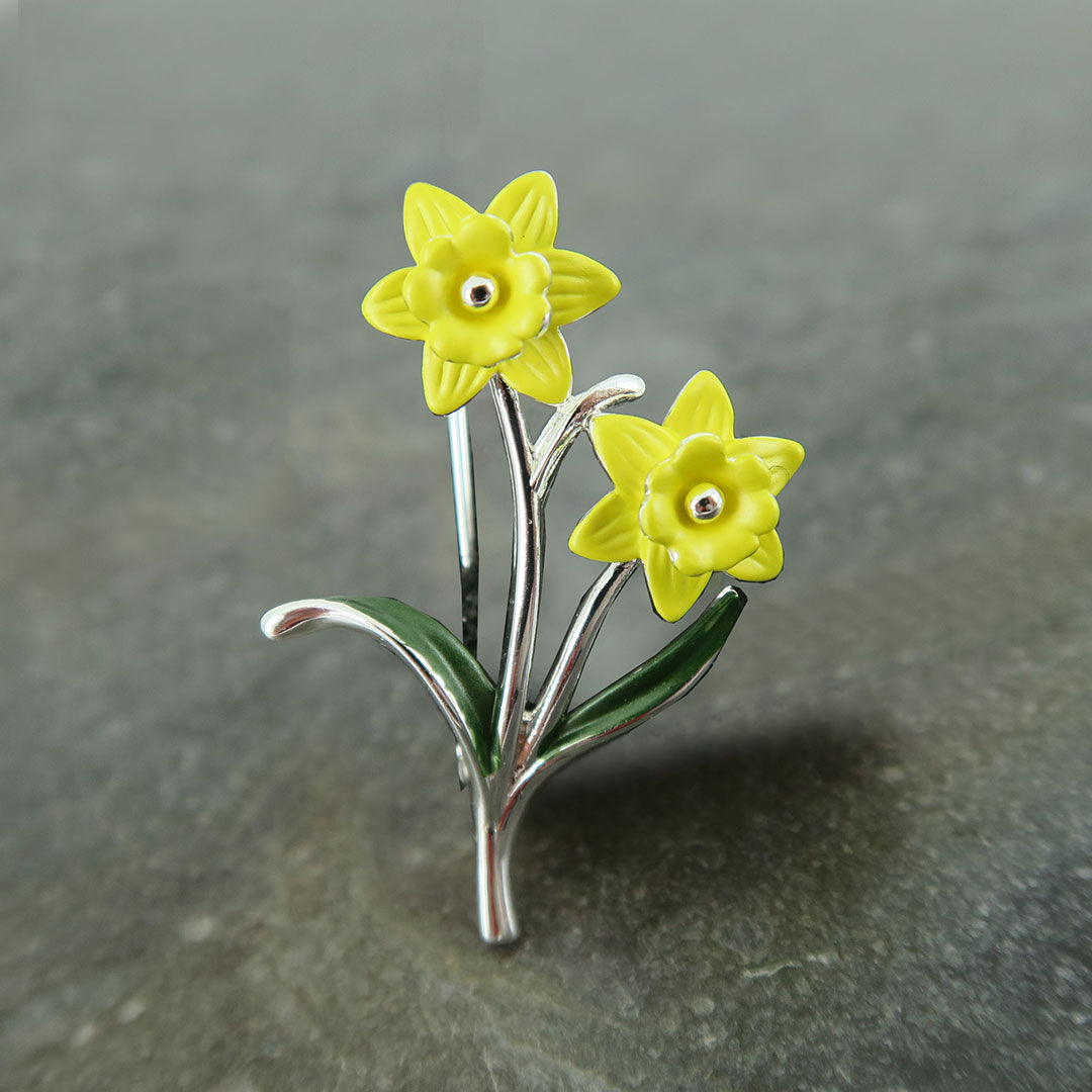 Daffodil Spray Brooch Silver Tone - This beautiful Daffodil flower brooch is the ideal way to bring the brightness and cheer of Spring to any outfit.