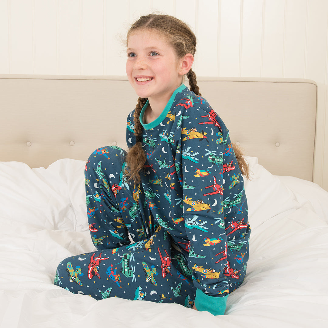 These unisex pyjamas celebrate the RAF and popular aircraft in a unique, sustainable gift for young aviation fans.