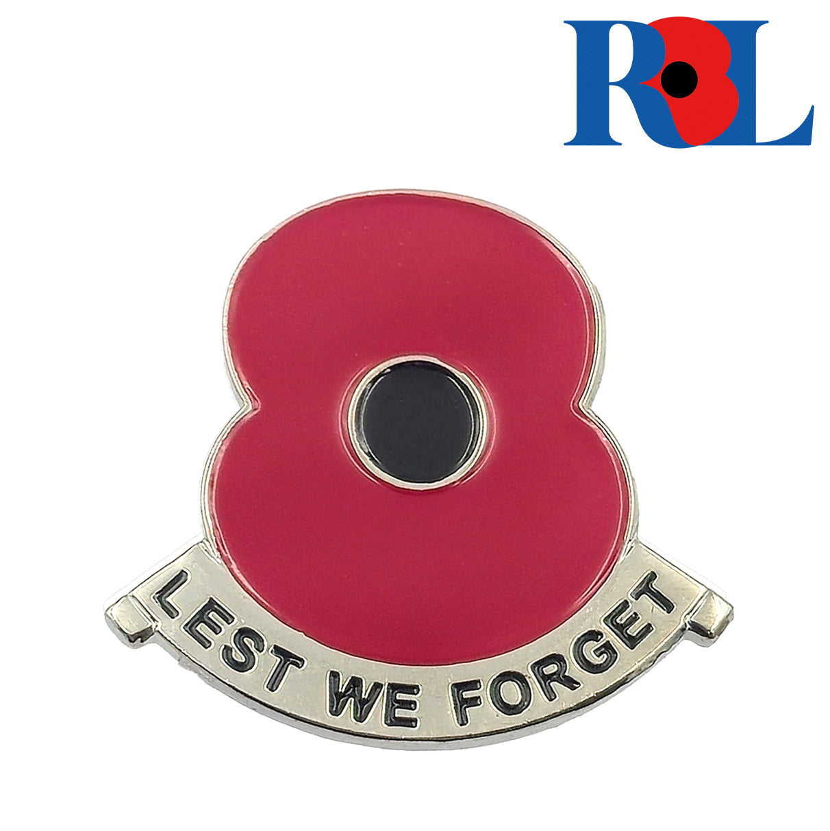 RBL Lest We Forget Poppy Silver Scroll Pin